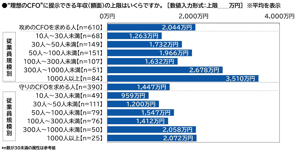 “理想のCFO”に提示できる年収の上限 平均は1,811万円、従業員規模1,000人以上では平均3,180万円