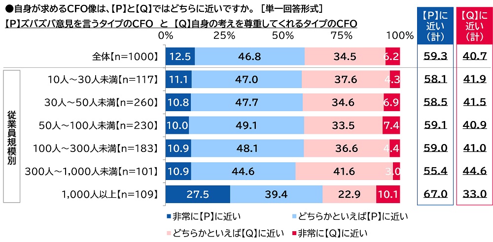 従業員規模1,000人以上では「ズバズバ意見を言うタイプのCFO」が67%