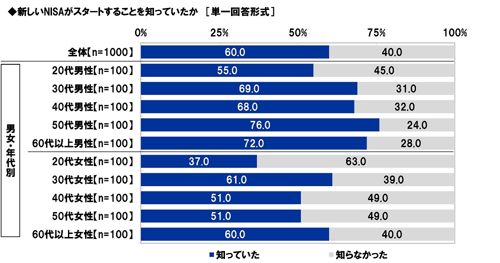 “新しいNISA”の認知率は60%、50代男性では76%