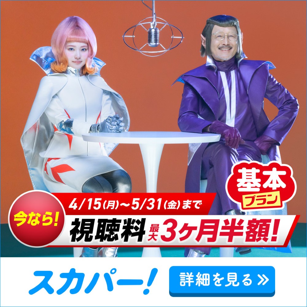 アンケートでも子育て卒業世代が見たいと挙げられた番組の多くが見られる「スカパー! 基本プラン」が今ならお得!4月15日~5月31日までのキャンペーン期間中に、スカパー! に新規ご加入し、スカパー! 基本プランを新規ご加入と同月にご契約されたお客様に限り、スカパー! 基本プラン視聴料が加入翌月に加え、加入翌々月からの2ヶ月間も1,980円(税込)となります。