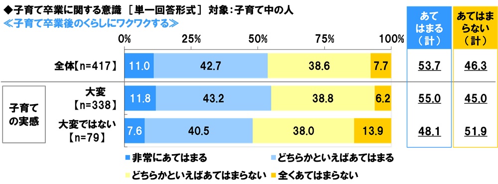 「子育て卒業後のくらしにワクワクする」子育て中の人の54%