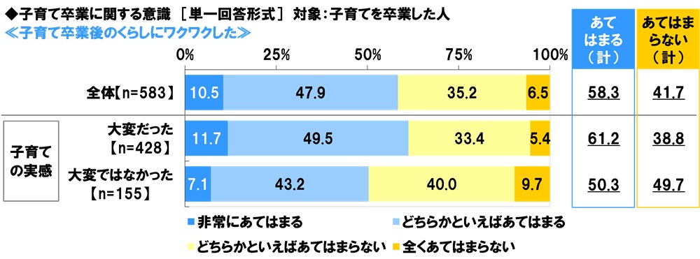 「子育て卒業後のくらしにワクワクした」子育てを卒業した人の58%