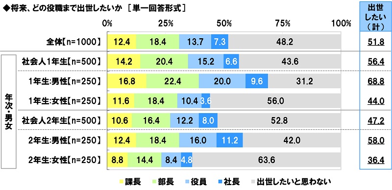 「出世したいと思わない」社会人1年生44%、社会人2年生53%