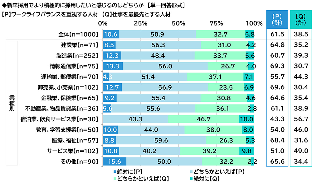 “ワークライフバランス重視”vs“仕事最優先” 「ワークライフバランスを重視する人材」62%、「仕事を最優先とする人材」39%