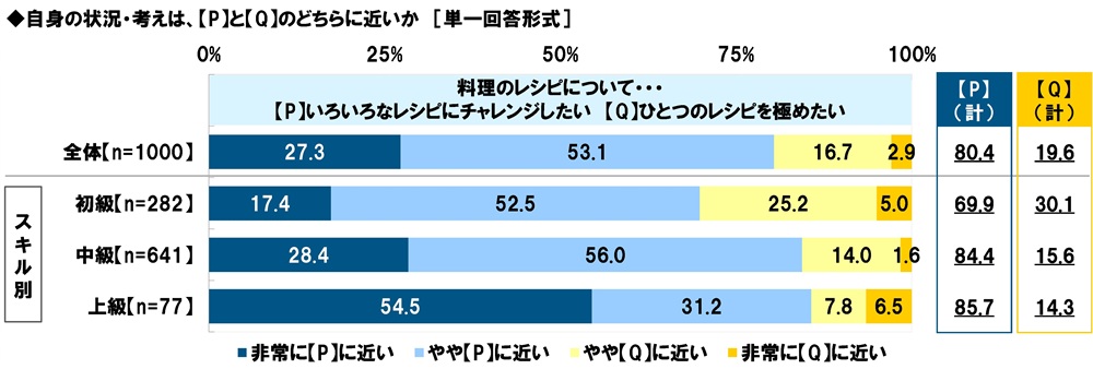 「いろいろなレシピにチャレンジしたい」8割、初級の人では「ひとつのレシピを極めたい」が3割
