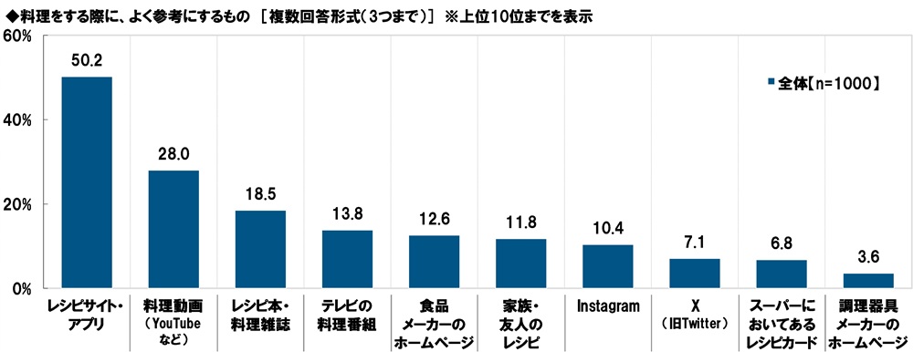 料理をする際に、よく参考にするもの 1位「レシピサイト・アプリ」2位「料理動画」3位「レシピ本・料理雑誌」